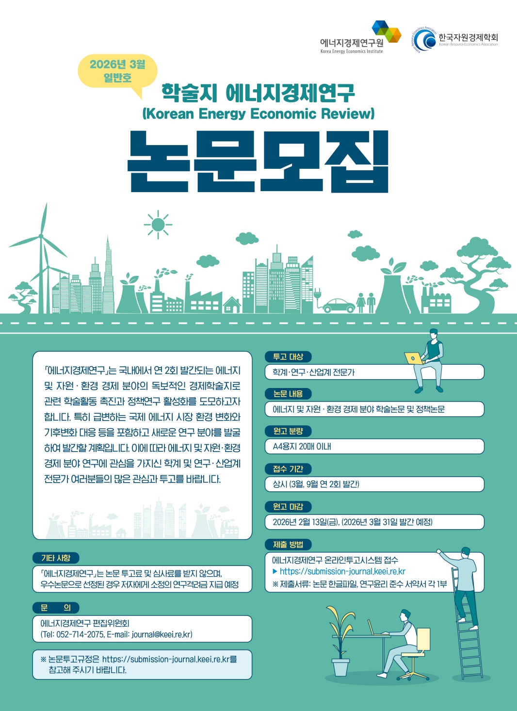 등재 학술지 「에너지경제연구」 논문 공모 안내