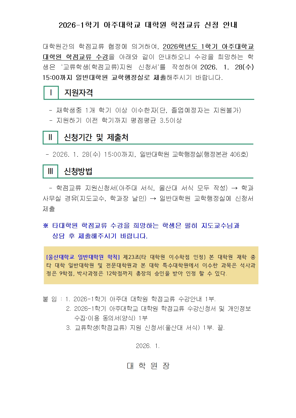 붙임1. 2026-1학기 아주대 대학원 학점교류 수강안내.pdf