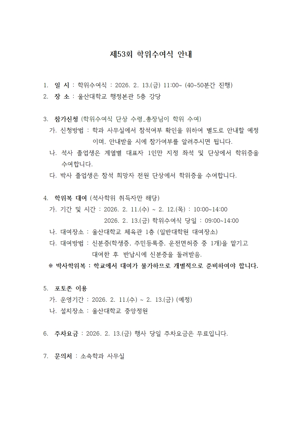 제53회 전기 학위수여식 안내