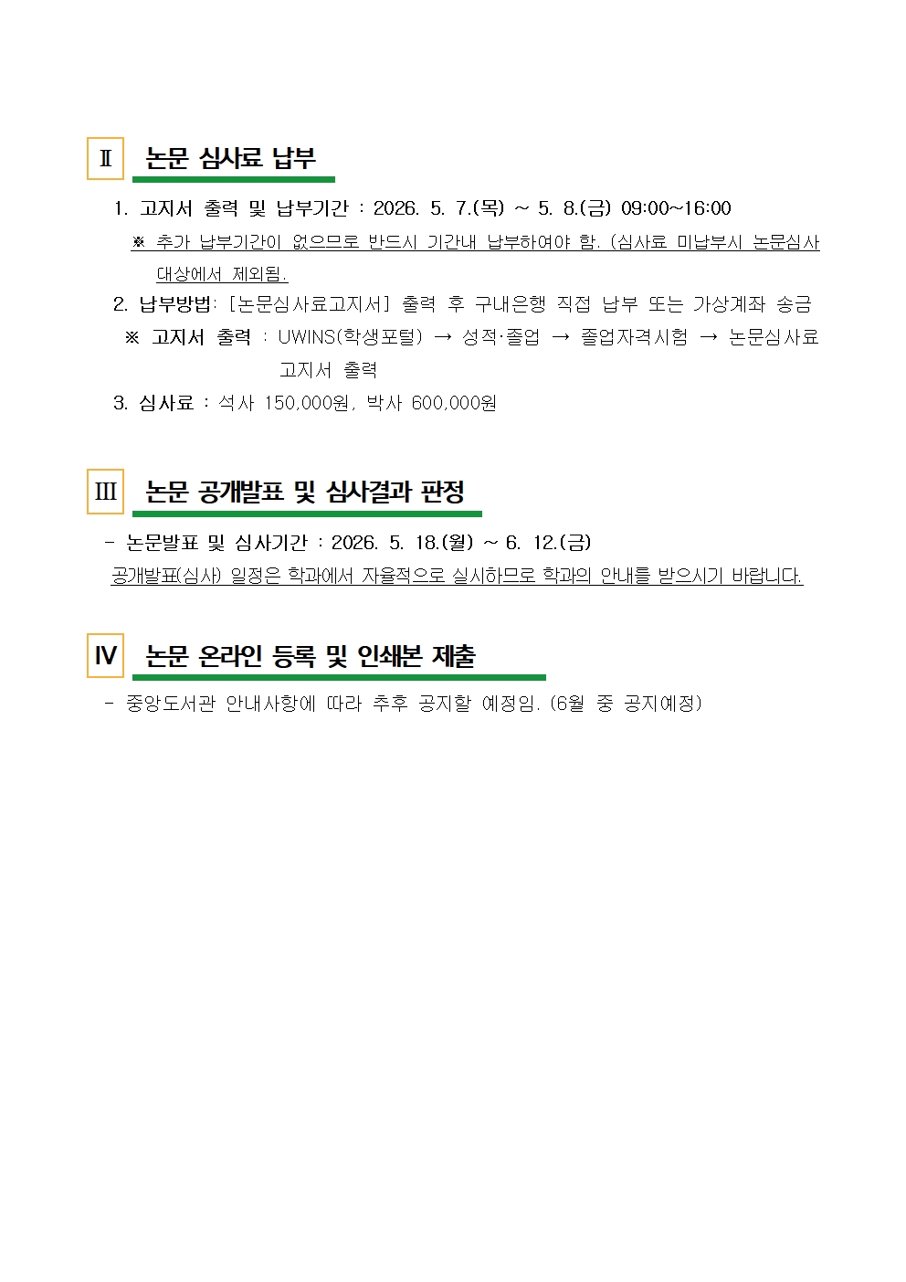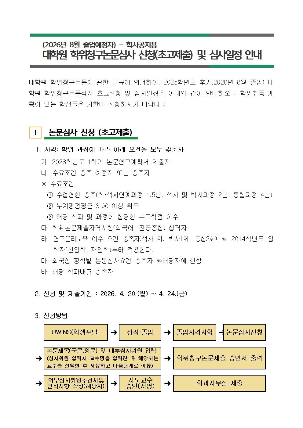 학위청구논문심사 신청(초고제출) 및 심사일정 안내 (2026년 8월 졸업대상자)
